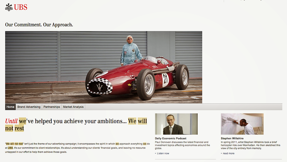 “We Will Not Rest” was UBS’s first campaign after the financial crisis of 2010. It was a huge, global rebranding effort that celebrated those whose great tenacity drove them to success, and the support team behind them who helped make their achievements possible.