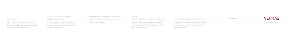 We developed new brand guidelines, key messages, and a brand book to introduce the new Veritas to 10,000+ of their employees and the world.