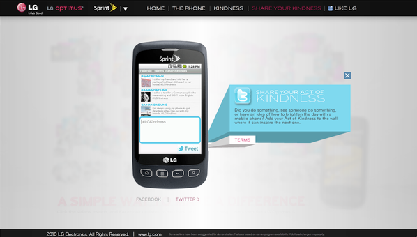And we asked users to post their good deeds on the LG Kindness wall via Facebook or Twitter.
