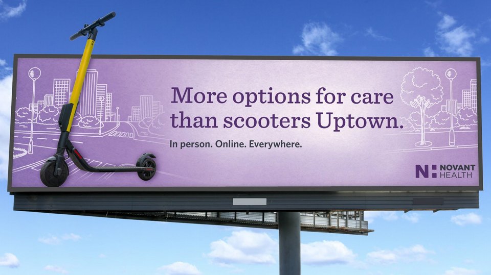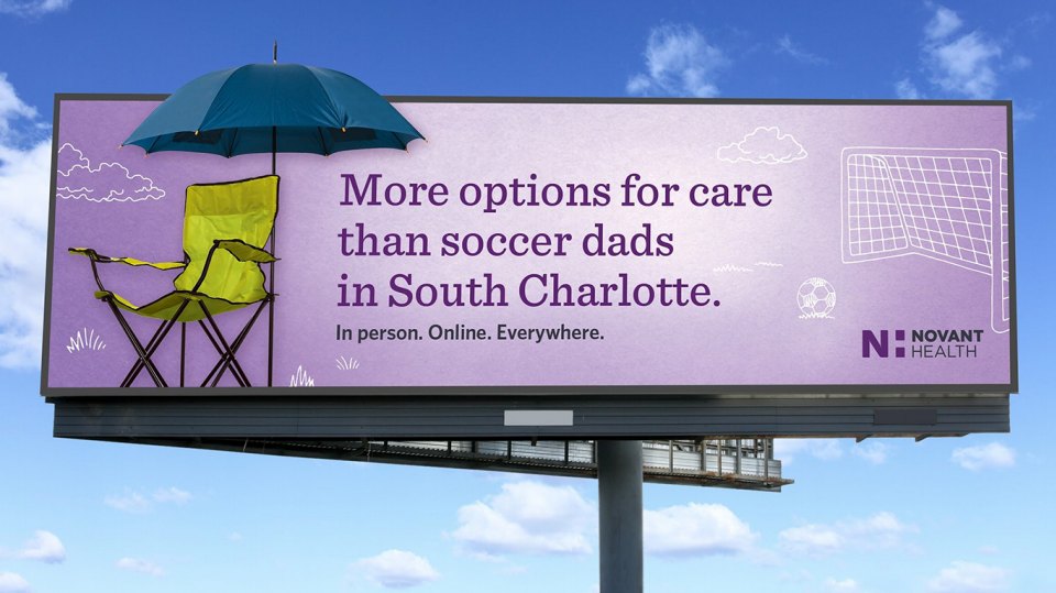 Novant Health has been in North Carolina for 100 years and is an integral part of the community. These billboards convey the ubiquitous presence of Novant Health and show their community pride with cheeky insights about the neighborhoods they are placed in. If you live there, you understand.